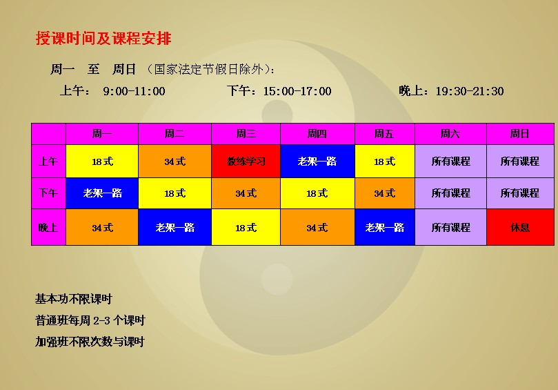 加强班学员和太极拳基础班(养生功)学员不在此限制