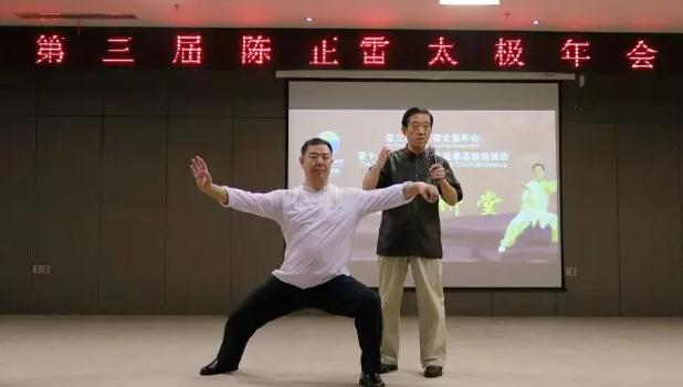 针对在场的初学者,陈正雷宗师从陈氏太极拳对周身各部位的要求讲起,将人身三节(头为上节,腹为中节,腿为下节)的各个部位的练拳要求一一讲来,并通过弟子的动作示范实践讲解,直观易懂。