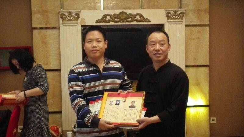 首先有请陈正雷大师入室弟子魏勰老师为弟子颁发拜师贴和拜师照。