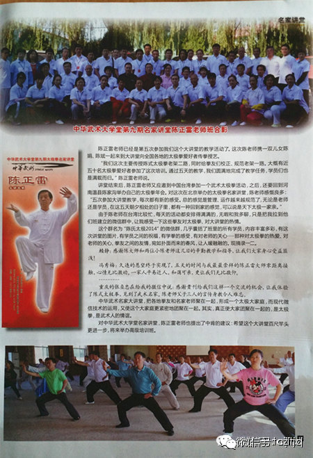 这也是《中华武术》杂志连续三个月刊登陈正雷太极体系的相关内容:11月,《中华武术》(第十一期)刊登了“中华武术大学堂第九期名家讲堂”陈正雷大师班的精彩记录和学员的学习感言,以及授予陈正雷大师“中华武术三十年最具影响力人物奖”的报道。