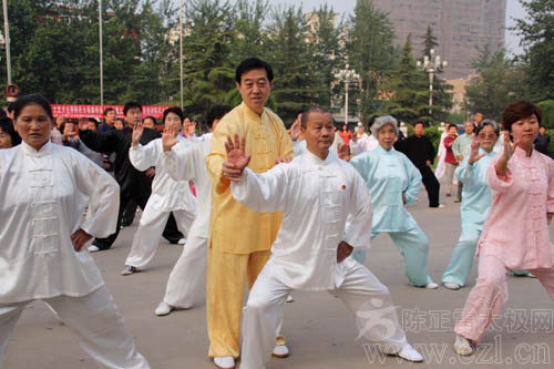 陈正雷大师在峡期间,受到了三门峡市领导和三门峡体育局的热情接待和三门峡广大太极拳爱好者的热烈欢迎。在三门峡市掀起了一股太极拳旋风。6月10日下午陈正雷大师为广大太极拳爱好者上了一堂生动的陈氏太极拳理论课。偌大的会议室座无虚席,连走廊里都站满了人。陈大师对太极拳的起源、传承和发展进行了概述,从“心明、体明、神明”三个阶段学习太极拳做了深入浅出的讲解,特别是陈大师针对广大爱好者怎样练好太极拳的基本功和习练中易犯的错误进行了详尽的传授,使广大爱好者受益匪浅。陈大师分别于6月10日,11日早晨在三门峡市体育馆广场亲自带领广大学员习练了陈氏太极拳精要十八式和缠丝功。陈大师的面授身传使广大学员兴奋异常,他们切身感受到在家门口能够亲自免费跟陈大师学拳,不仅进一步领会了陈氏太极拳的基本要领,提高了拳艺,而且更加坚定了学习和掌握陈氏太极拳的勇气和信心。特别是陈大师平易近人,诲人不倦的讲解和示范使广大学员深切感受到大师的人格魅力和风采。