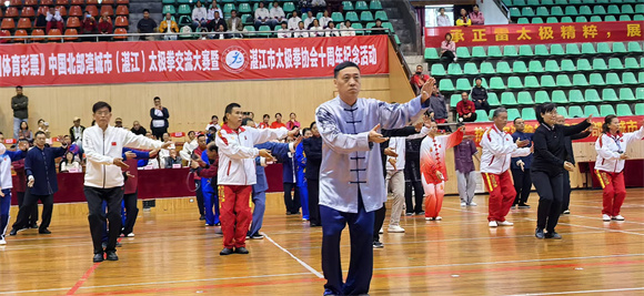 太极拳传人们来个快闪祝贺湛江太极拳协会成立十周年