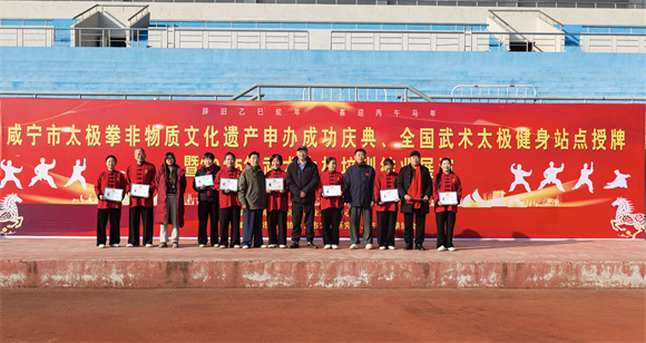 云上咸宁报道(记者 邓超 通讯员 罗书利)1月8日,咸宁太极拳市级非物质文化遗产申报成功、全国武术太极健身站点授牌暨2025年武术太极培训结业展演在咸宁体育中心举行。