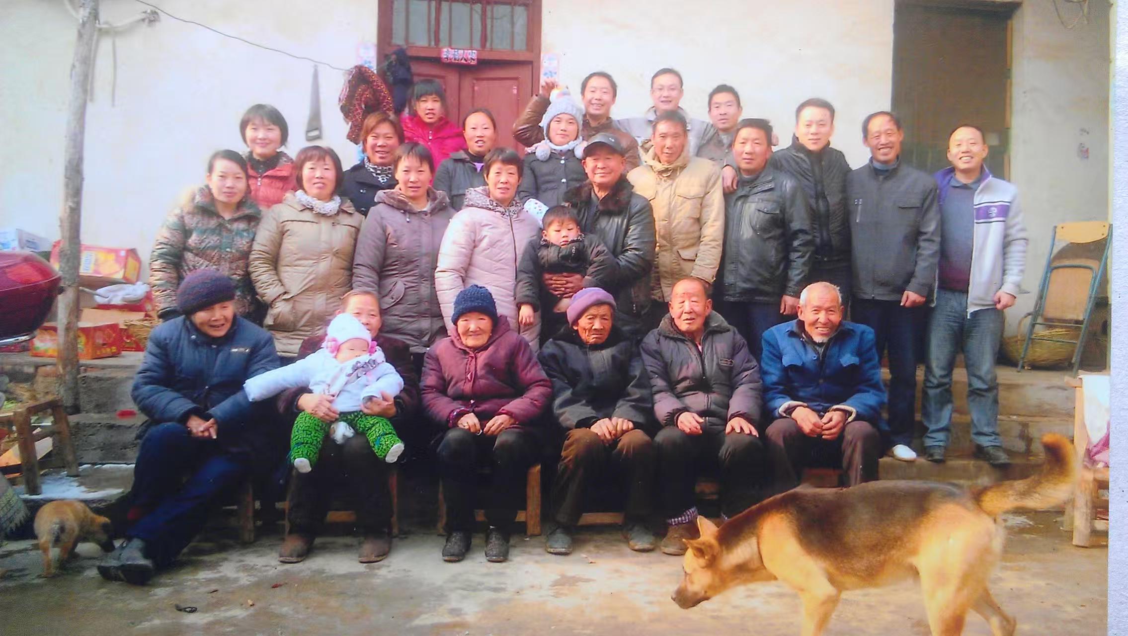 我们大家庭在2015年儿子魏大华一周岁时合影留念   可哪有什么好日子?大锅饭时代,一家老小挤在土坯茅草房里,锅里煮着稀粥,碗里飘着几片菜叶。娘总把碗里的米粒挑给爹,爹又偷偷塞回娘手里。您二老就这么推来推去,最后谁也舍不得吃,全倒进了孩子们的碗里。娘在生妹妹时饿得全身浮肿,几乎没有了命,是舅舅用中药泡酒救活了娘亲。 我清楚的记得,那一年生产队分红薯,人家都一挑挑地担回家了,我们家的红薯始终没有人动,看着妈妈无奈的表情,我也不知道哪里来的冤屈,大声痛哭起来,妈妈和姐姐们都哄我,可是我还是一个劲地哭。第二天、第三天我还是在哭,村里很多人都来哄我,也都无济于事,我还是哭个不停。后来我大伯听说了,来劝我,给我拿了一半白面馍,我才慢慢地缓下来说:“人家的红薯都拿回家了,我们家的红薯咋还不拿回来呢”;妈妈和姐姐们听我这么一说,也都禁不住失声痛哭起来,大伯起身擦干饱含住的眼泪说:“娃儿呀!大伯给你80分,一会就把咱家的红薯挑回来吧”我抬头用希望的眼神充满着谢意望着大伯止住了连续哭了三天的眼泪。后来爹在外面做完木匠活回来说:“以后咱家一定能吃上白面馍。”