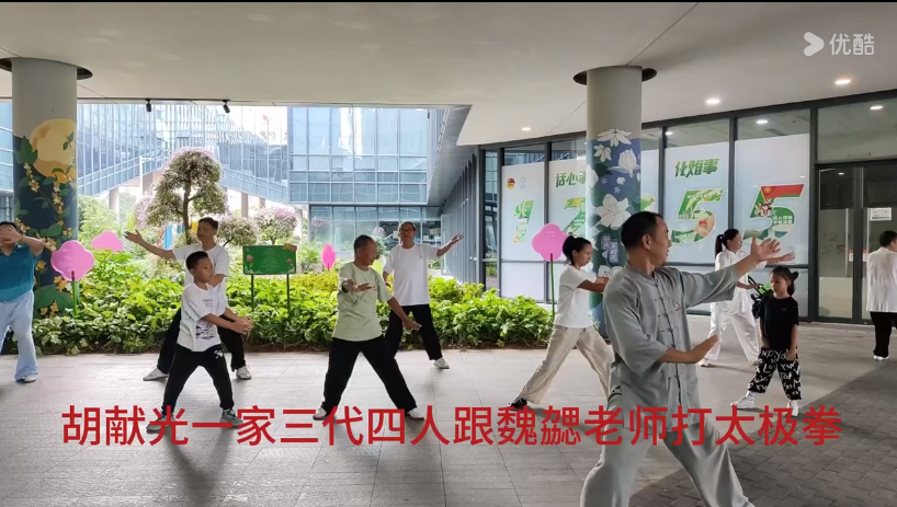 一家三代四人打太极拳了,胡献光带领女儿,外孙,外孙女(二年级)跟我打太极拳。赢得了同学们的阵阵叫好,大家都说这两个小朋友值得培养。