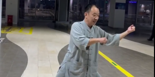 10、井栏直入:实为胫拦直入,小腿拦踢结合摔法,理精法密,动作不虚,需腿上硬功,攻防一体。