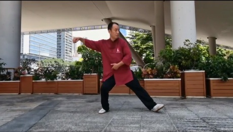 白鹅亮翅要分明,右翅舒展击长空,两手引来搂风式,右足开步左要跟